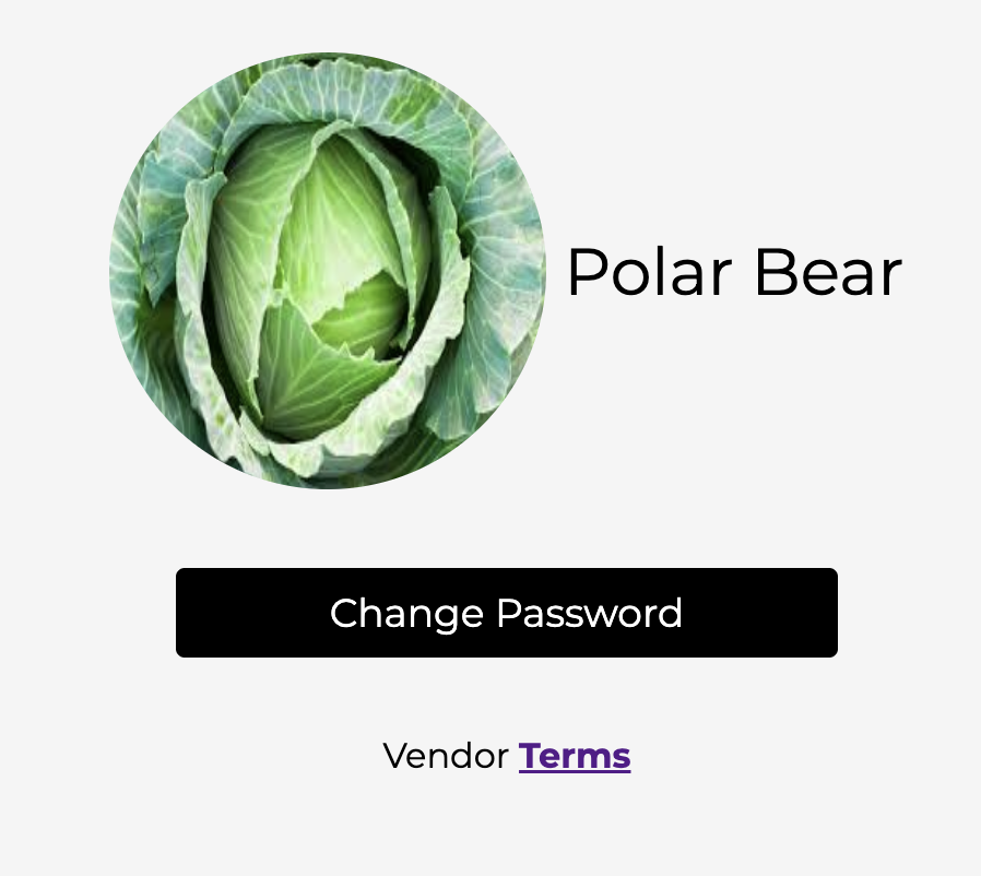 The ‘Settings’ Tab allows you to alter your image, Vendor name, and password. Here’s an example:
