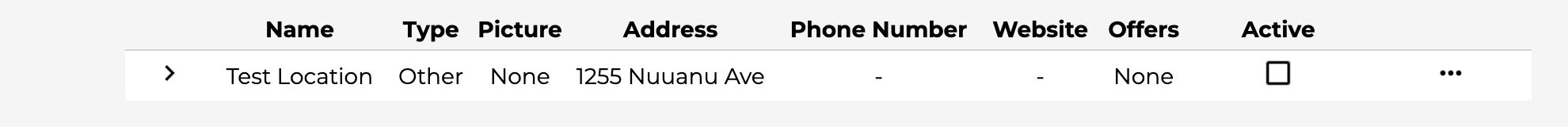 Phone Number is the optional phone number of the location. In this case it is ‘808-555-1212’.