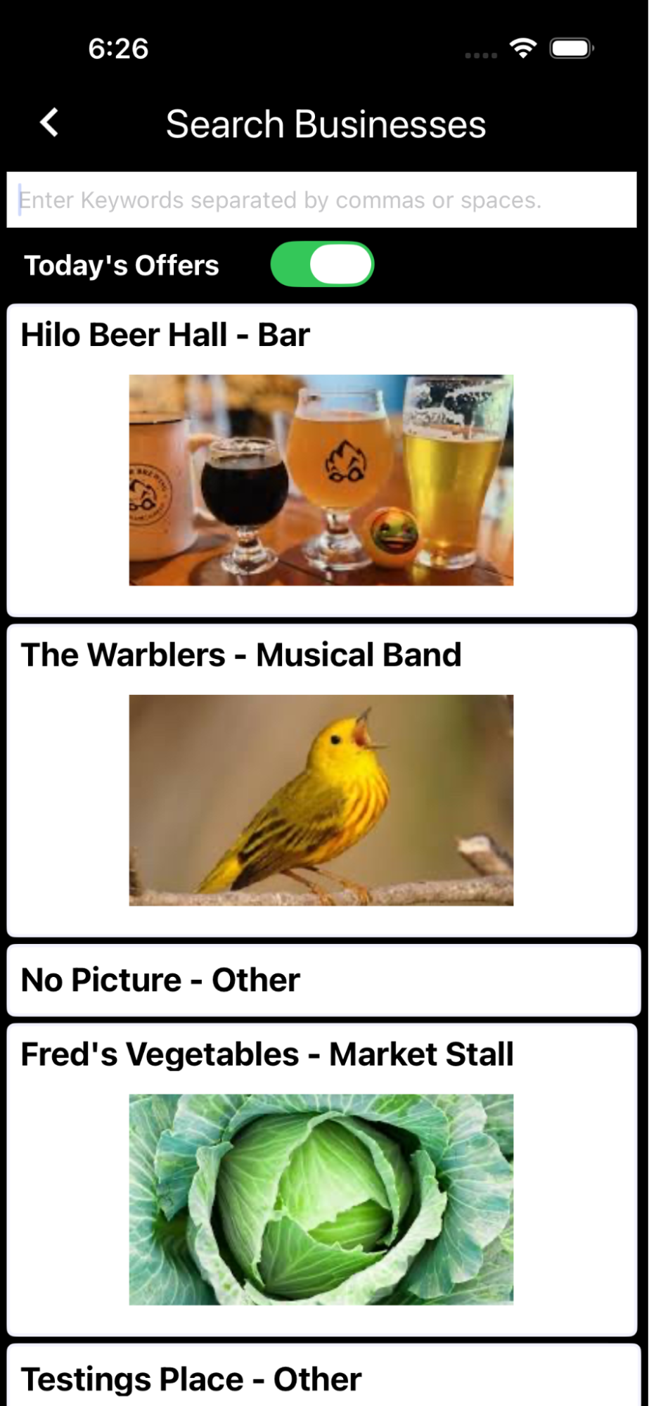 Displaying Offers and Businesses in the App.